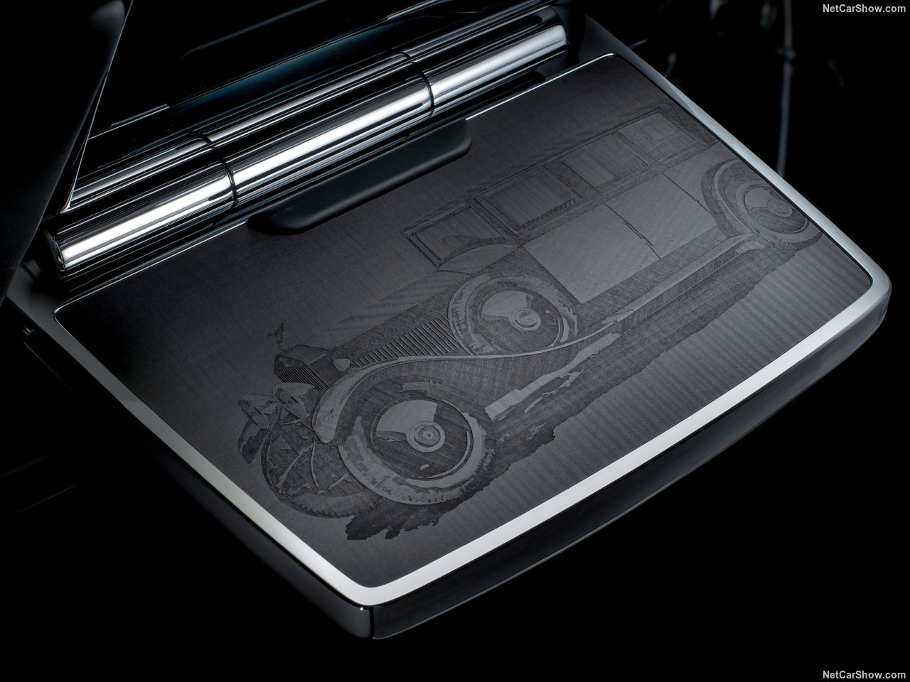 The woodwork is completed with depictions of the original 1925 Phantom I and the current Phantom VIII, individually etched on the rear picnic tables. The models are mirrored in embroidery on the leather-finished backs of the picnic tables - another gesture uniting past and present.