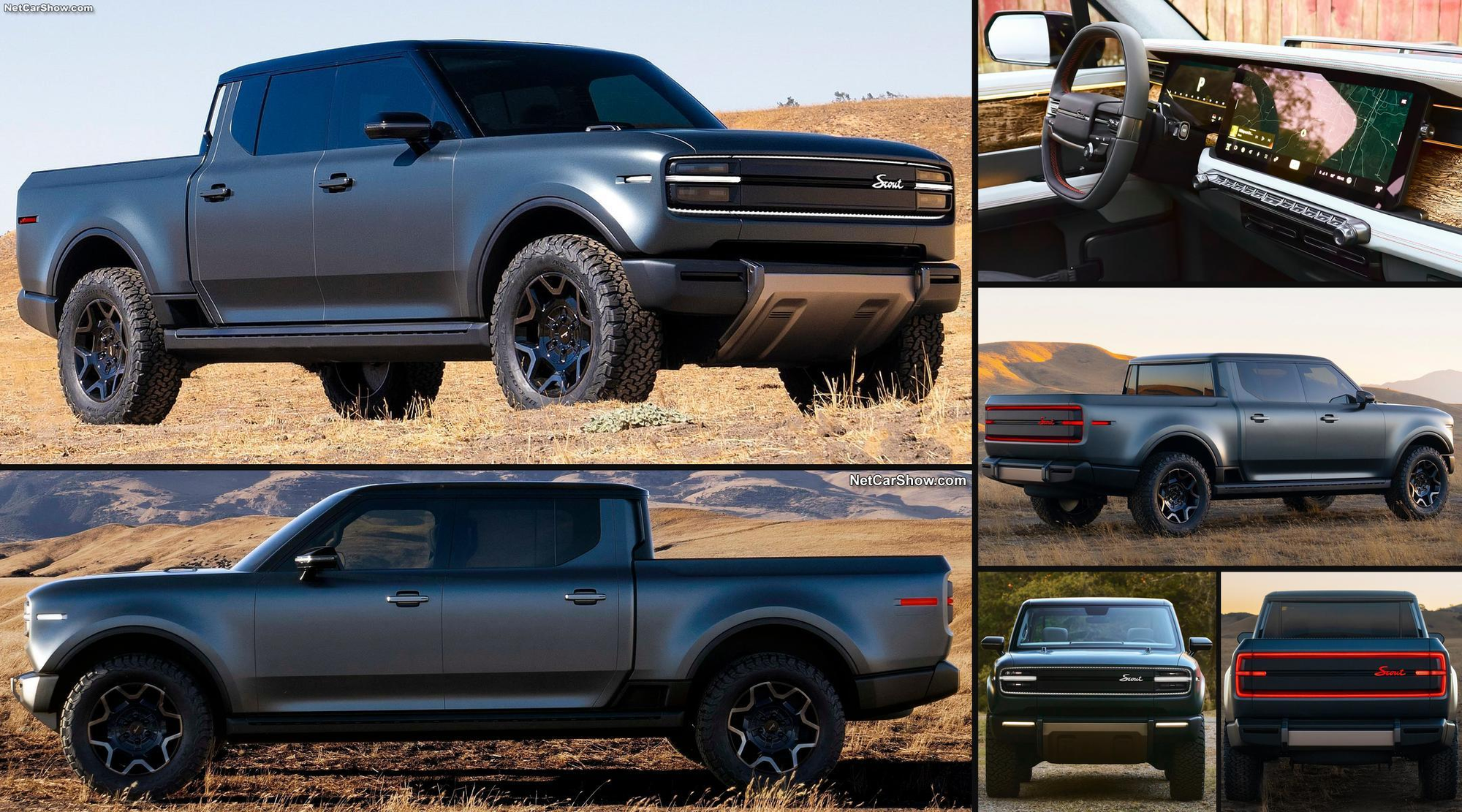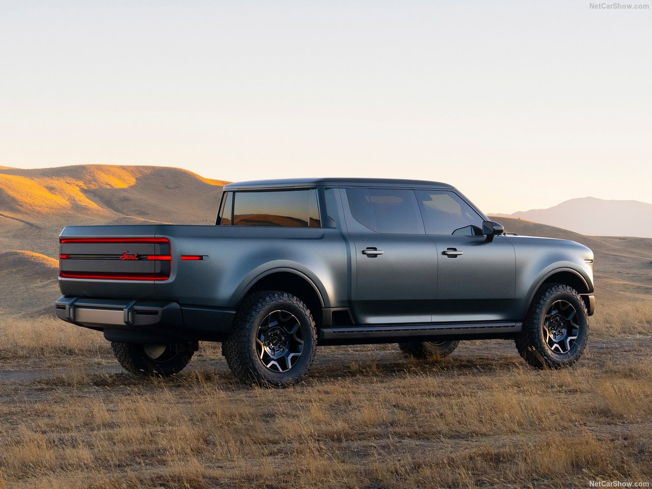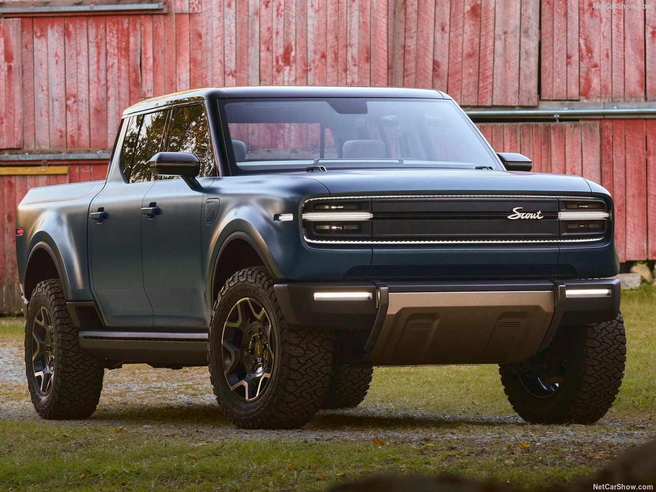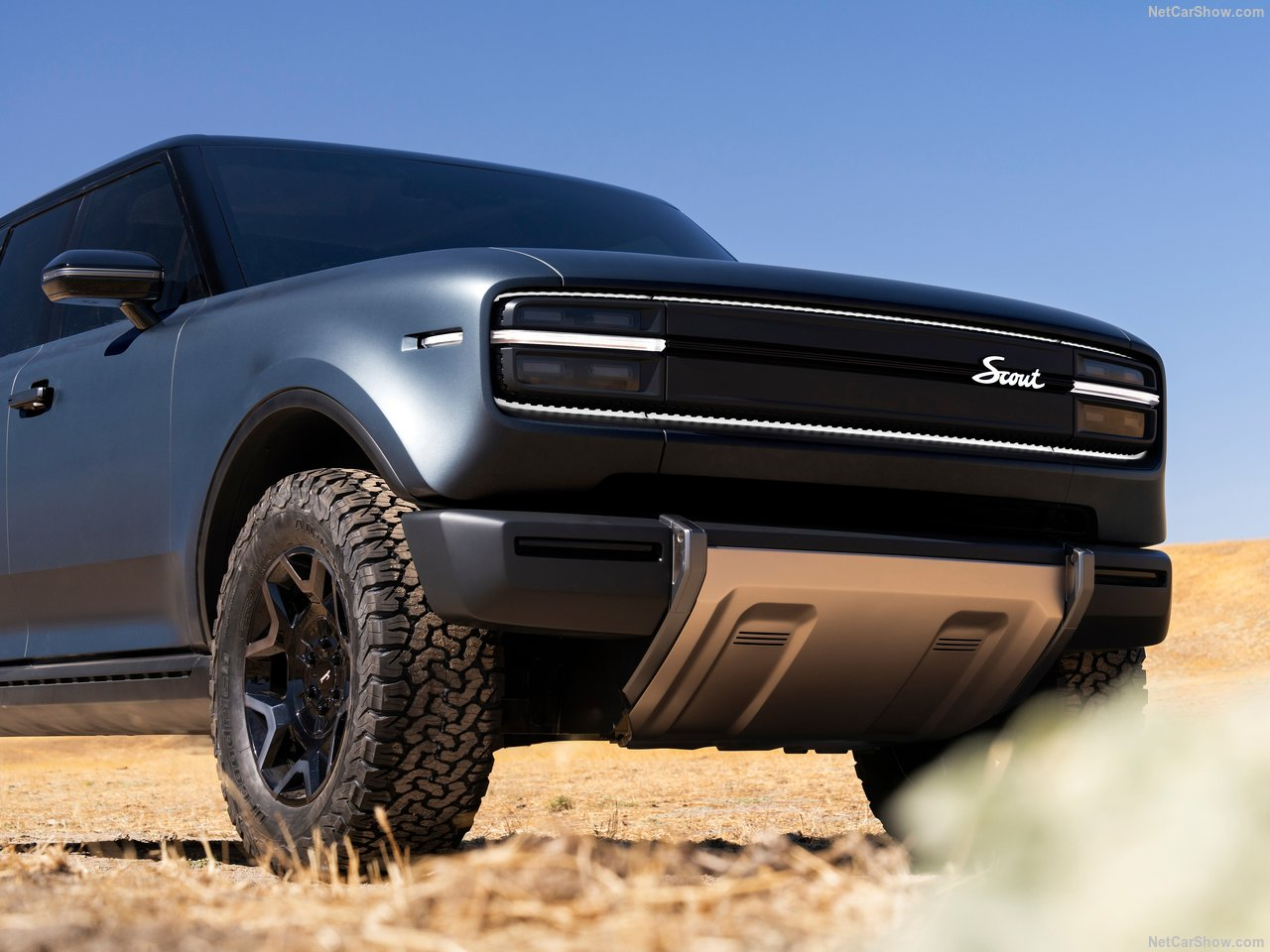 The Scout SUV and truck feature a bold, rugged design with iconic proportions. A hallmark of those proportions is a very short front overhang, long dash-to-axle, with the visual weight of the cabin shifted to the rear.