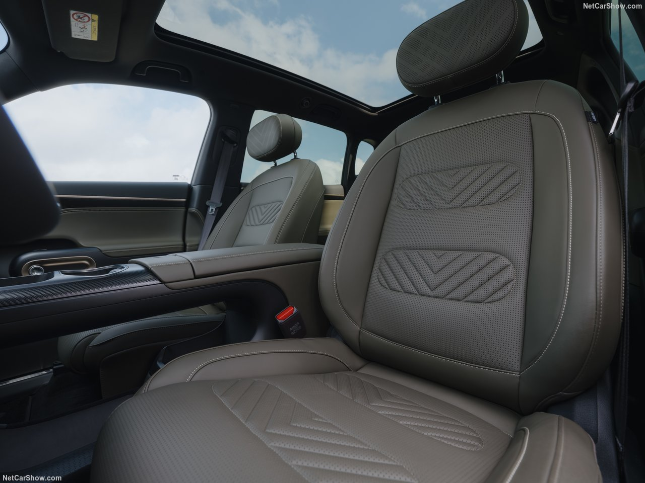 At the heart of the technologically advanced cabin is a wide console with a new HMI (human-machine-interface) design layout and two embedded screens in OLED technology. Powered by the high-performance AMD V2000 chip, these screens provide optimal access to the vehicle's numerous functions. Ambient lighting and features, such as a portable speaker integrated into the centre console, add to the charm. The zero-gravity front passenger seat offers an innovative combination of comfort and safety, integrating comfort features like heating, ventilation, massage functions and a leg rest. The seat also features new airbag solutions, providing high safety in the event of a collision.