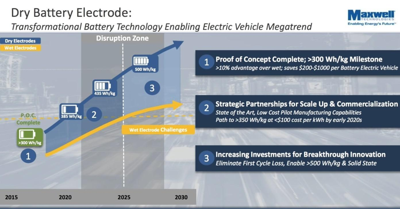 Maxwell said that they had a 300kw/kg battery in 2017, and that they'll have a 385kw/kg in 2020