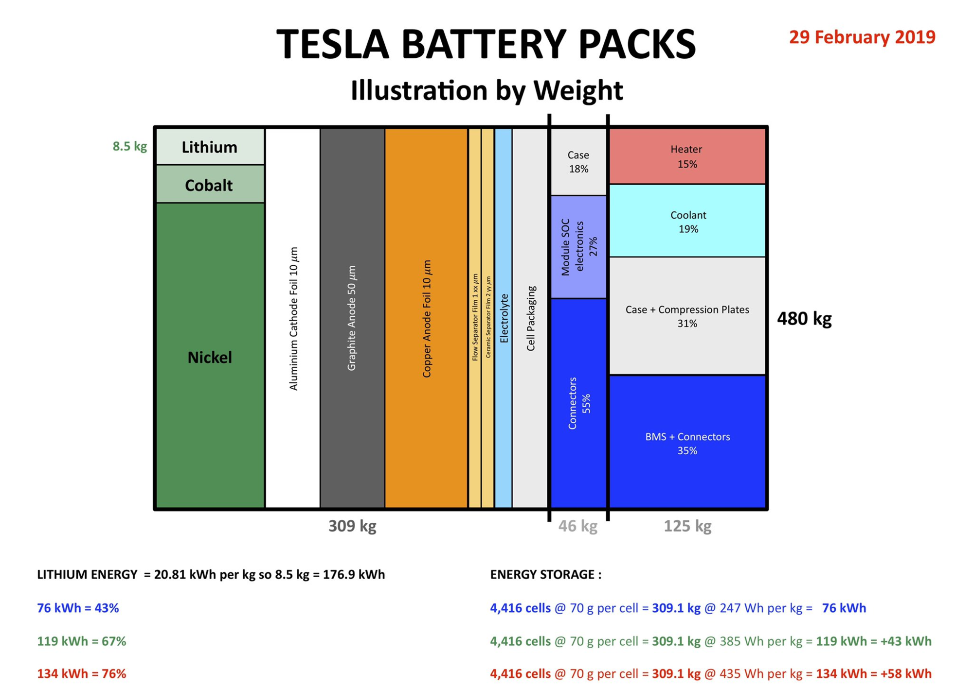 When they're able to pull off 385wh/kg battery (they will eventually) they could make a 100kwh battery whose cells weighs ~260kg, it'll use less materials than the current 75kwh, cost less and be easier to produce. Win win win. These maxwell batteries would also be safer, and run cooler. They could make a 100kwh Model 3 that'd have about a 450 miles range for less than they make a 75kwh version now. Once they get to 500wh/kg that will effectively double their gigafactories production, they'll get twice as many batteries out of the same amount of raw materials. It also cuts the costs in half.