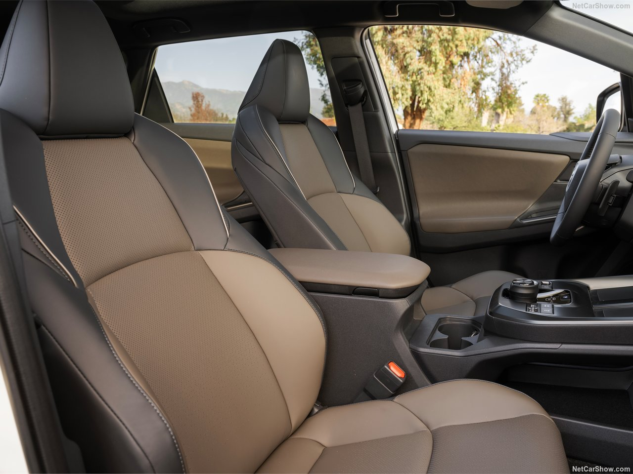 The bZ4X's exterior styling has been tweaked, and the interior has a newly standard 14.0-inch touchscreen that replaces the previous 12.3-inch unit. The revised center console adds dual wireless charging pads, but the dashboard retains the somewhat odd instrument-screen placement. Toyota also claims improved dynamics and lower noise levels for the revised bZ4X.