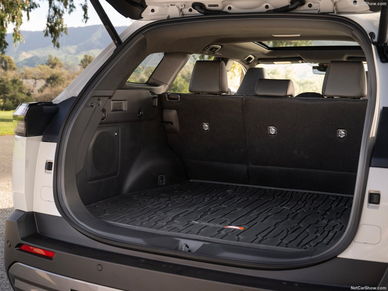 The 2026 bZ Woodland brings a different twist to the existing bZ's style. It adds rugged black overfenders to the Toyota hammerhead front end, has nearly 6-inches of additional length, and just under one inch of additional height in the rear. The extra length gives it a bit more space than its bZ sibling, with 74.3 cubic feet of storage with second row seats folded flat, versus the bZ model's 67.1 cubic feet.