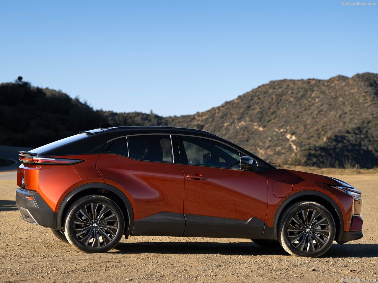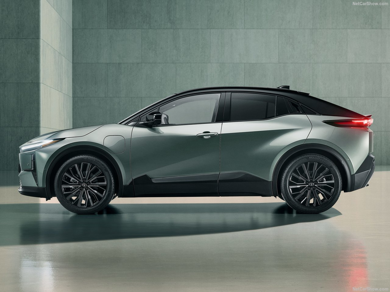 In the front three-quarter view, the clean and modern styling clearly identifies it as a contemporary Toyota BEV, while the wide stance conveys the kind of dynamic drive associated with the Toyota C-HR. The front bumper, grille and headlight designs are all exclusive the model, while the sleek, coupe-crossover silhouette is both distinctive and aero-efficient. Notably the coupe roofline is achieved without compromising headroom for rear seat passengers.