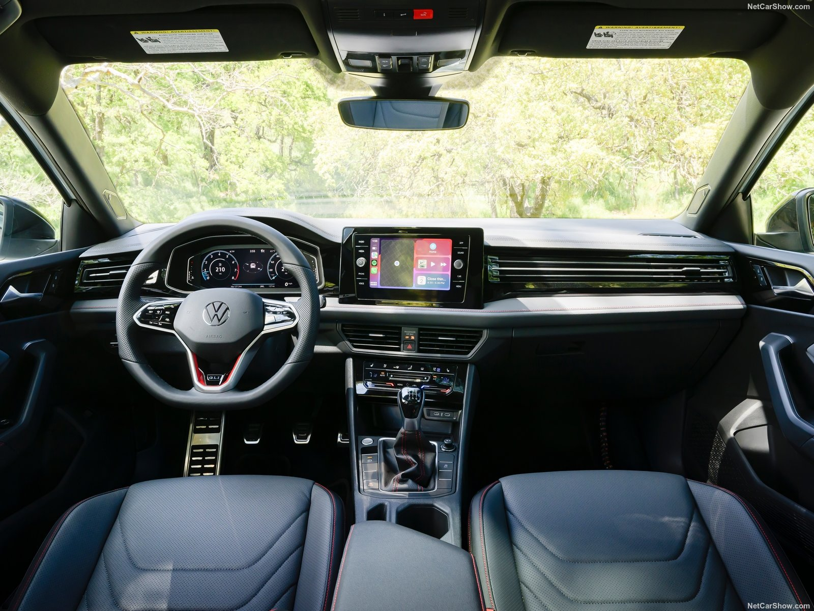 Digging deeper, the regular Jetta gets a nice powertrain upgrade. It now uses the turbocharged 1.5-liter engine from the Taos, which brings output up to 158 horsepower and 184 pound-feet of torque. It can be paired with either a six-speed manual transmission or eight-speed automatic. The manual is only available on the base S and the Sport trim, the latter of which replaces the R-Line and includes stiffer suspension, the brake-based XDS limited-slip differential and black trim. As before, the chassis is a version of the MQB platform with torsion-beam rear suspension. Regular Jettas also now come with more standard safety features including automatic emergency braking, blind-spot warning and rear cross-traffic warning. Buyers have a simpler selection of trims, too, including S, Sport, SE and SEL.