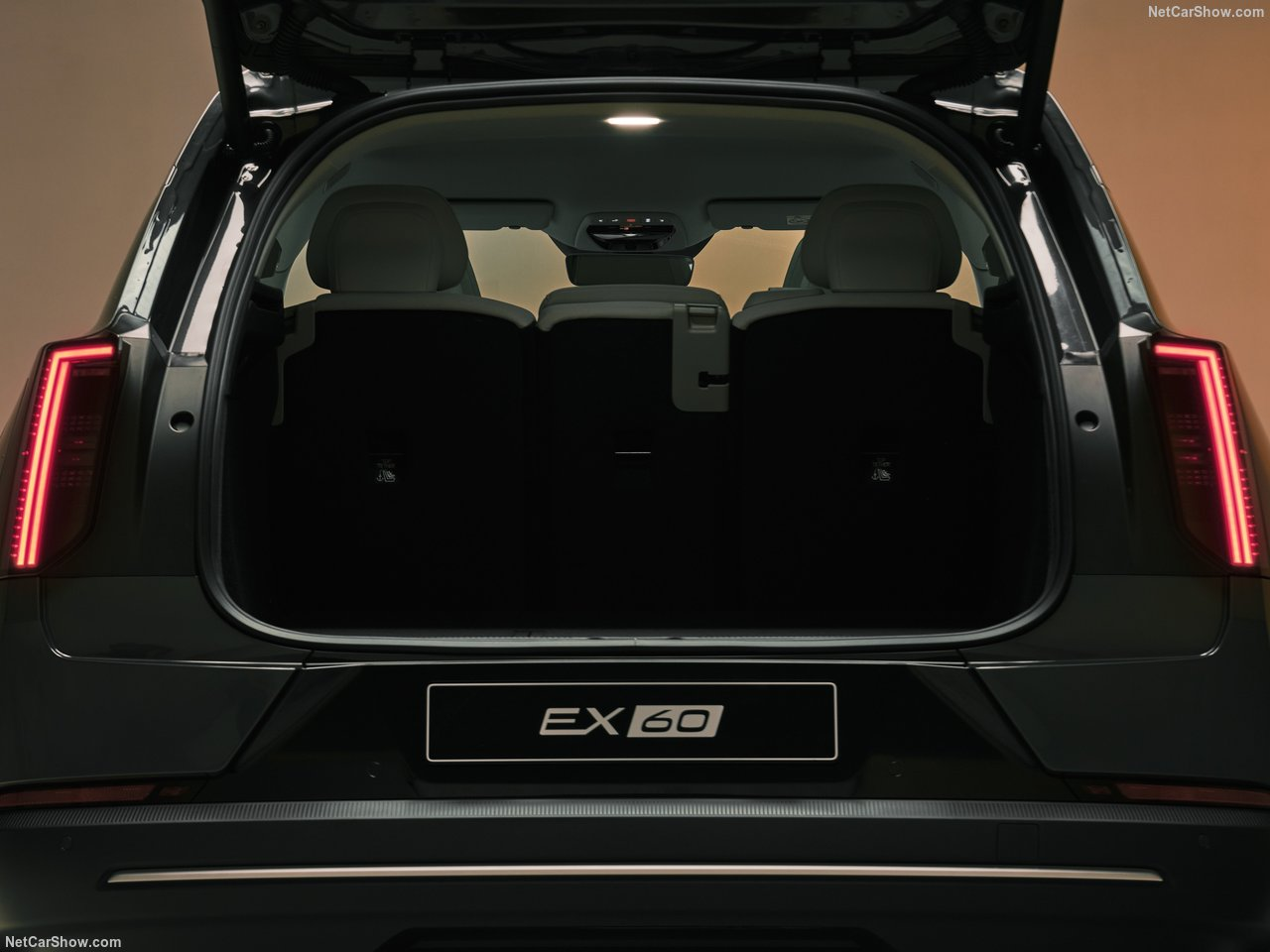 A low front, a sloping roofline and tapered body sides all boost overall aerodynamic efficiency. As a result, the EX60 slides through the air and has a very competitive drag coefficient of 0.26, contributing to the class-leading range. Inside, the EX60 is a star in versatility and practicality. The long wheelbase and flat floor create much more legroom in the rear, as well as a large luggage compartment and various smart storage spaces for personal items.