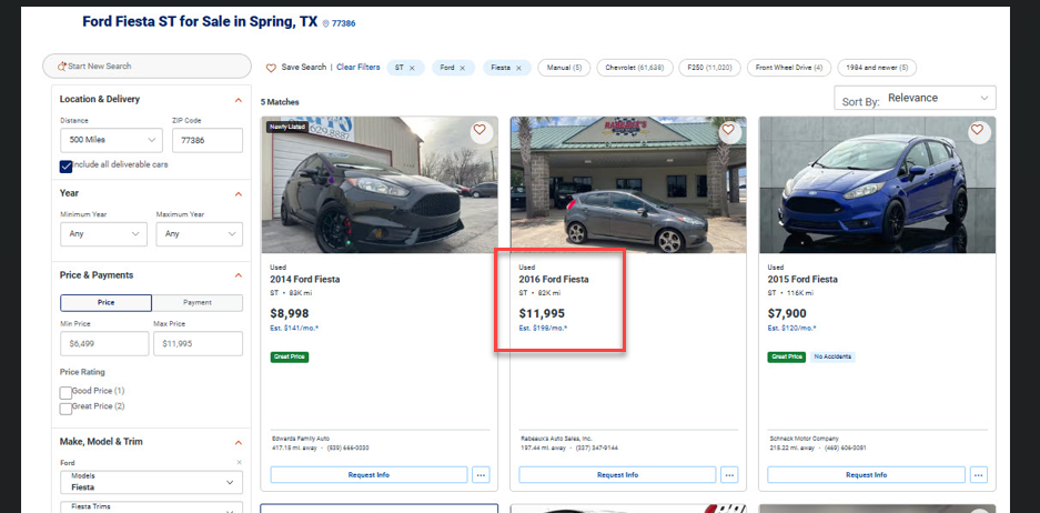 Gray FiST with Recaros, IIRC it had around 60k on it, listed for $12k