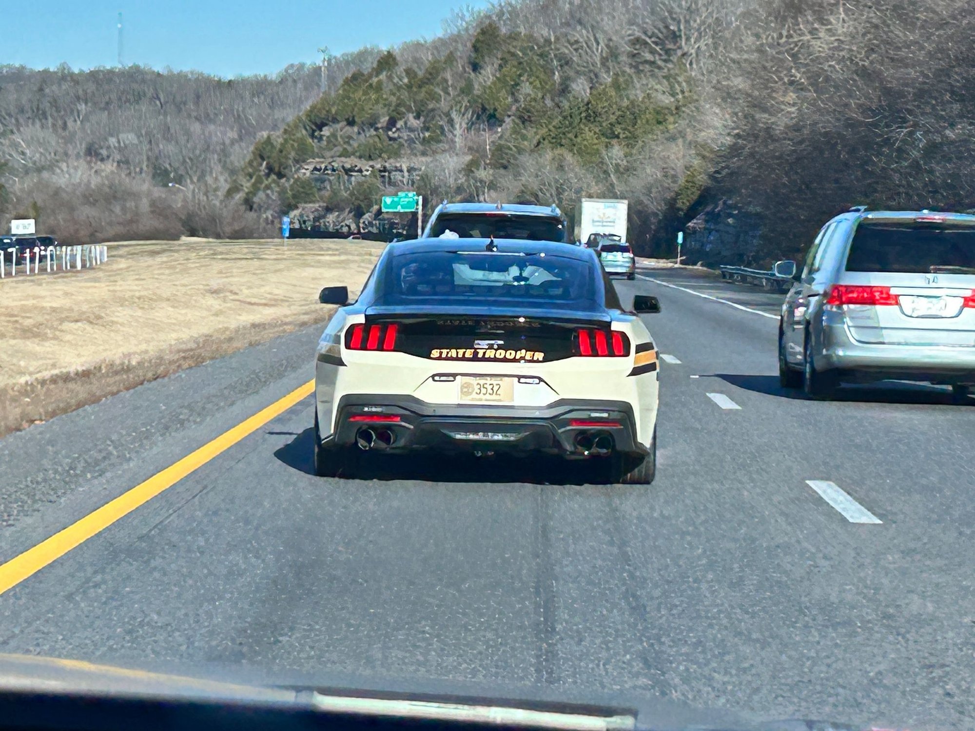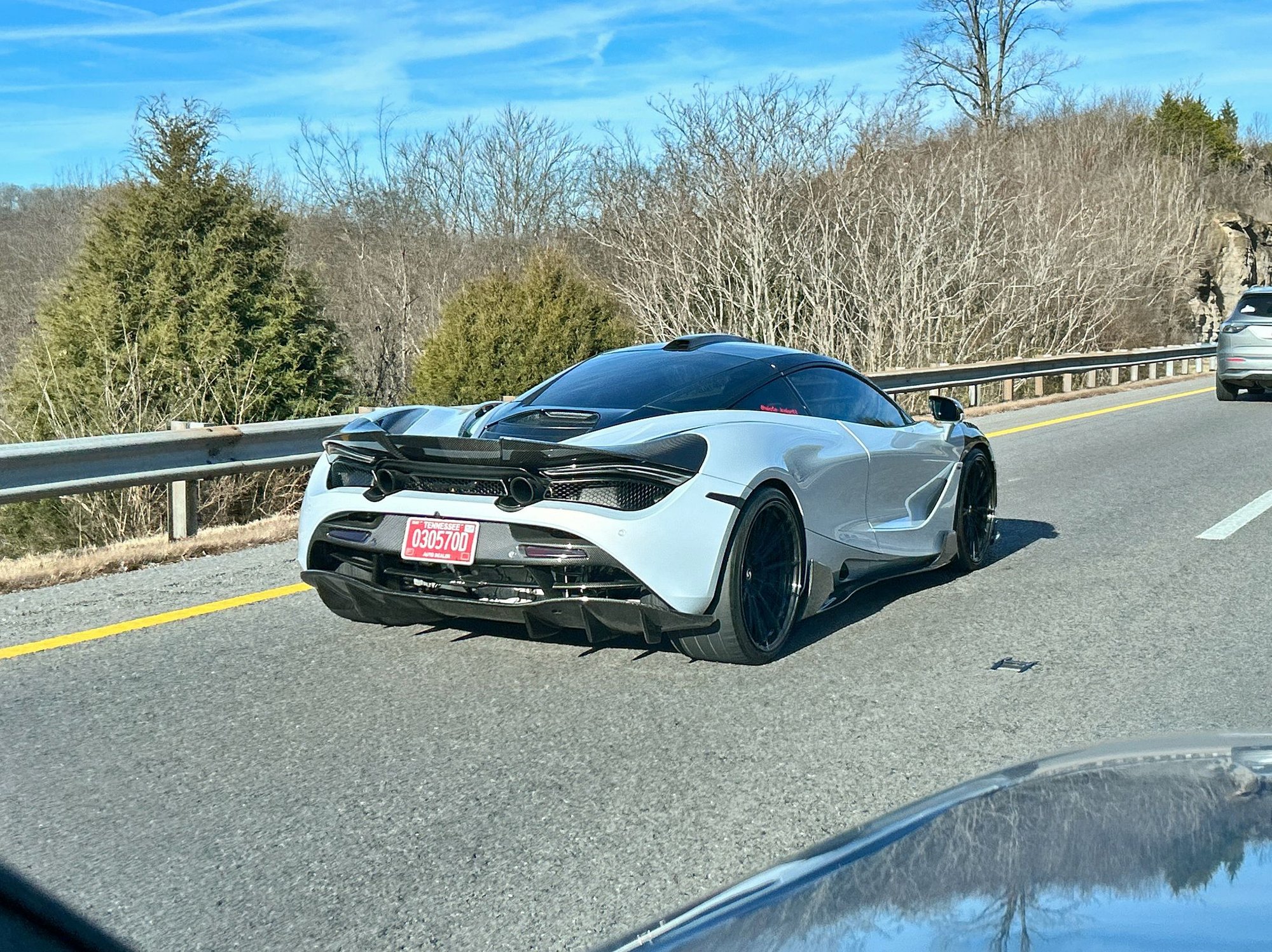 I don't know if this was some sort of escort situation or total coincidence, but the Tennessee State Trooper Mustang was ahead of the 720S and there was a C8 Vette behind him.