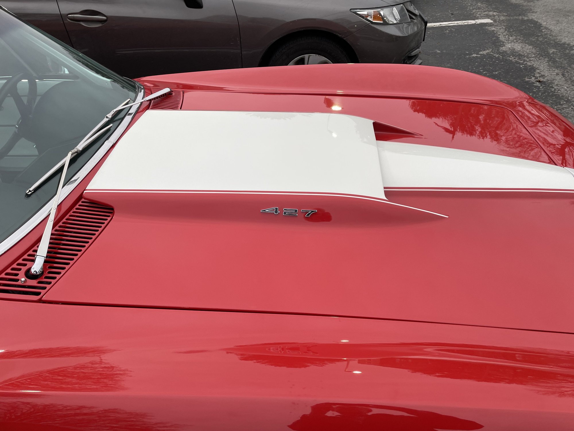 Very nice 2C with the "Stinger" hood the big block (396, 427) motors had. Looks like fugly aftermarket steering wheel. At local gas station in for service.