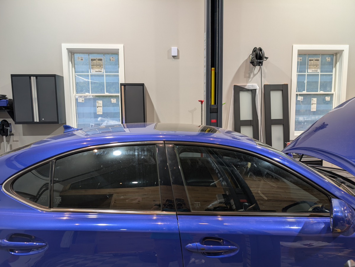 The full crew of cars almost early one cold morning. The RS7 and ISF were parked at the other house behind the trees.