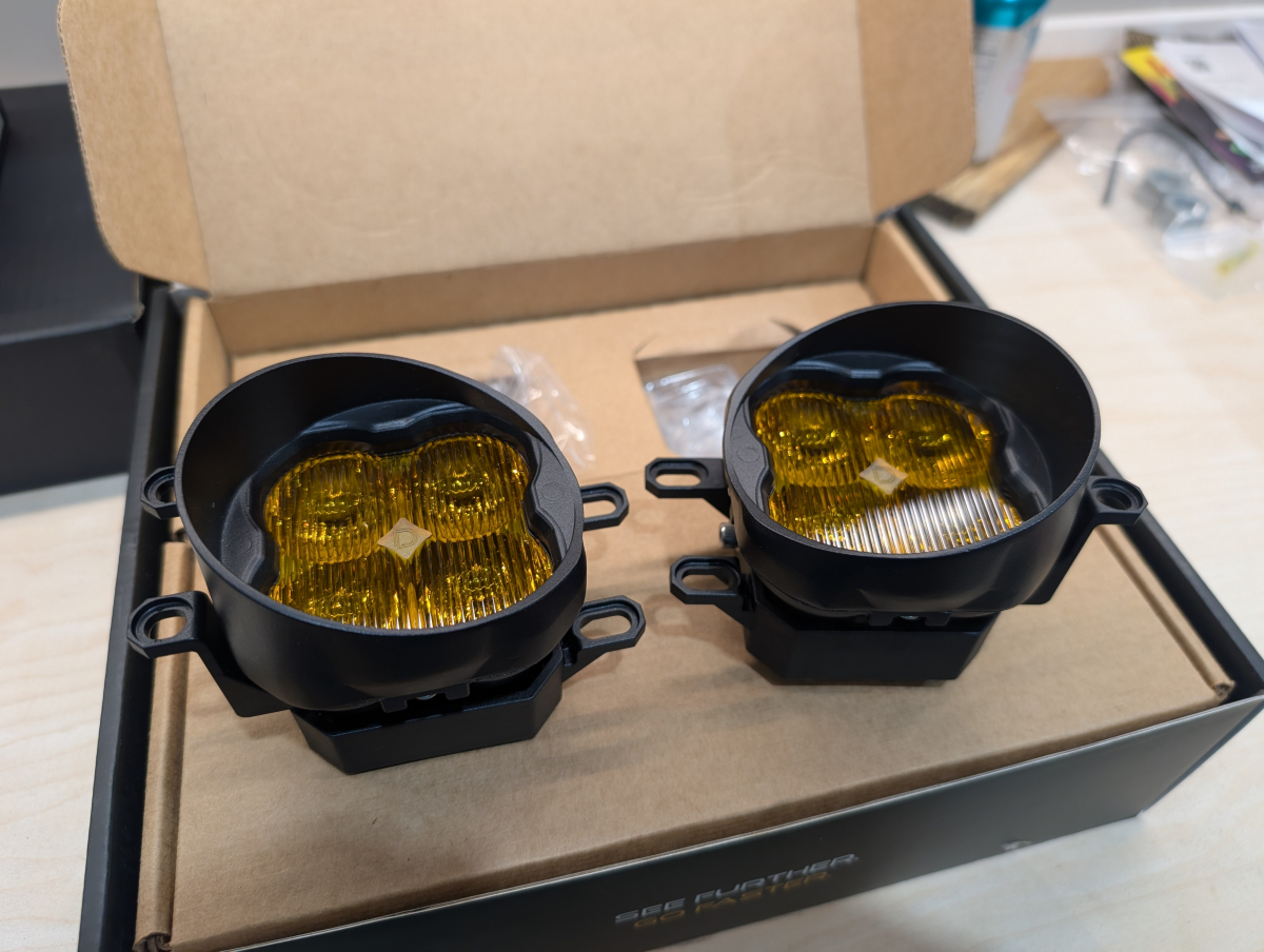 Bought some crazy Diode Dynamic SS3Max fogs for nighttime driving. The cutoff is super sharp just like the HIDs but effectively more than doubles the output while driving.