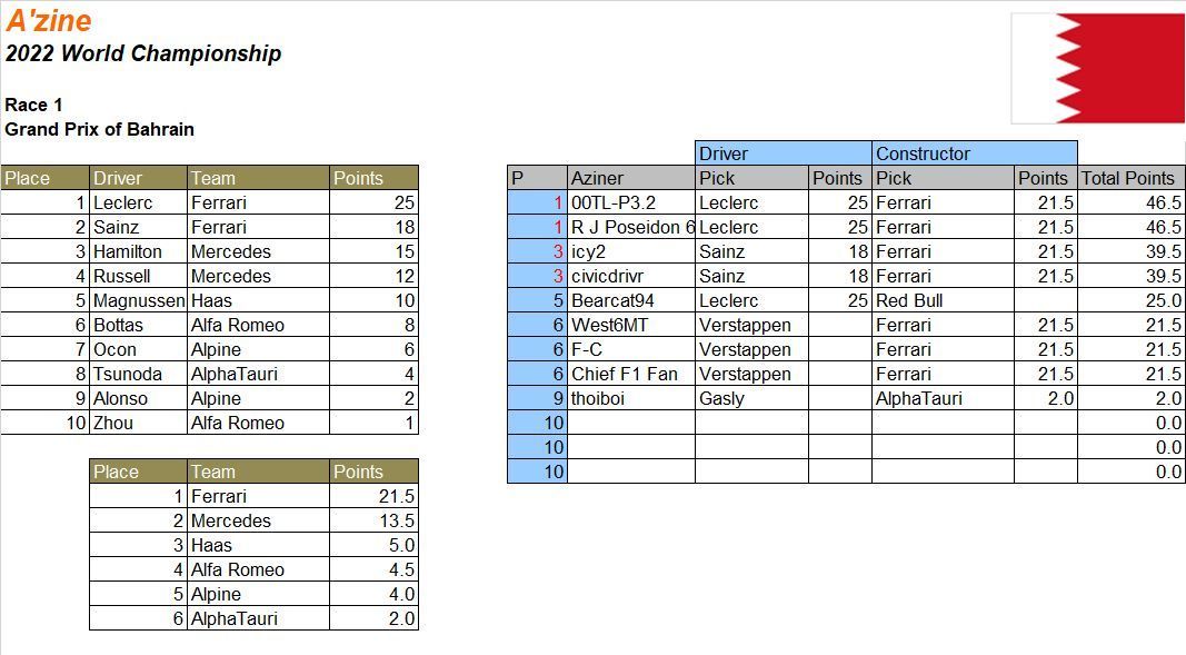 2022 Formula One Fantasy League - Grand Prix of Bahrain