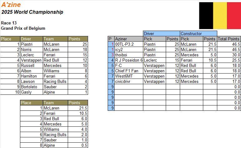 2025 Formula One Fantasy League - Grand Prix of Belgium