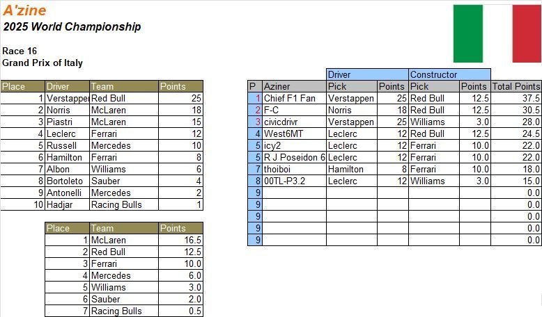 2025 Formula One Fantasy League - Grand Prix of Italy