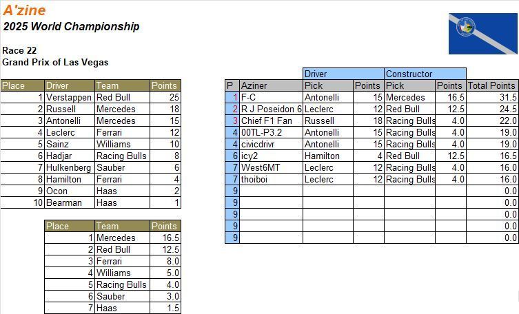 2025 Formula One Fantasy League - Grand Prix of Las Vegas