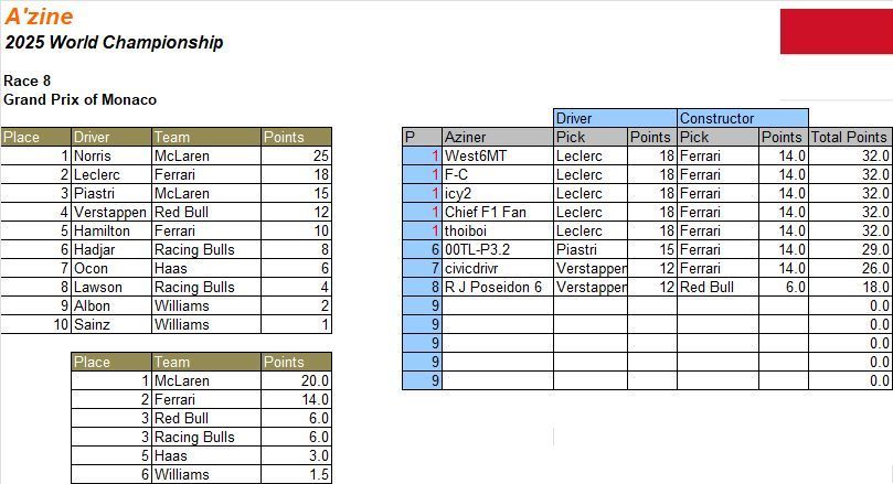 2025 Formula One Fantasy League - Grand Prix of Monaco