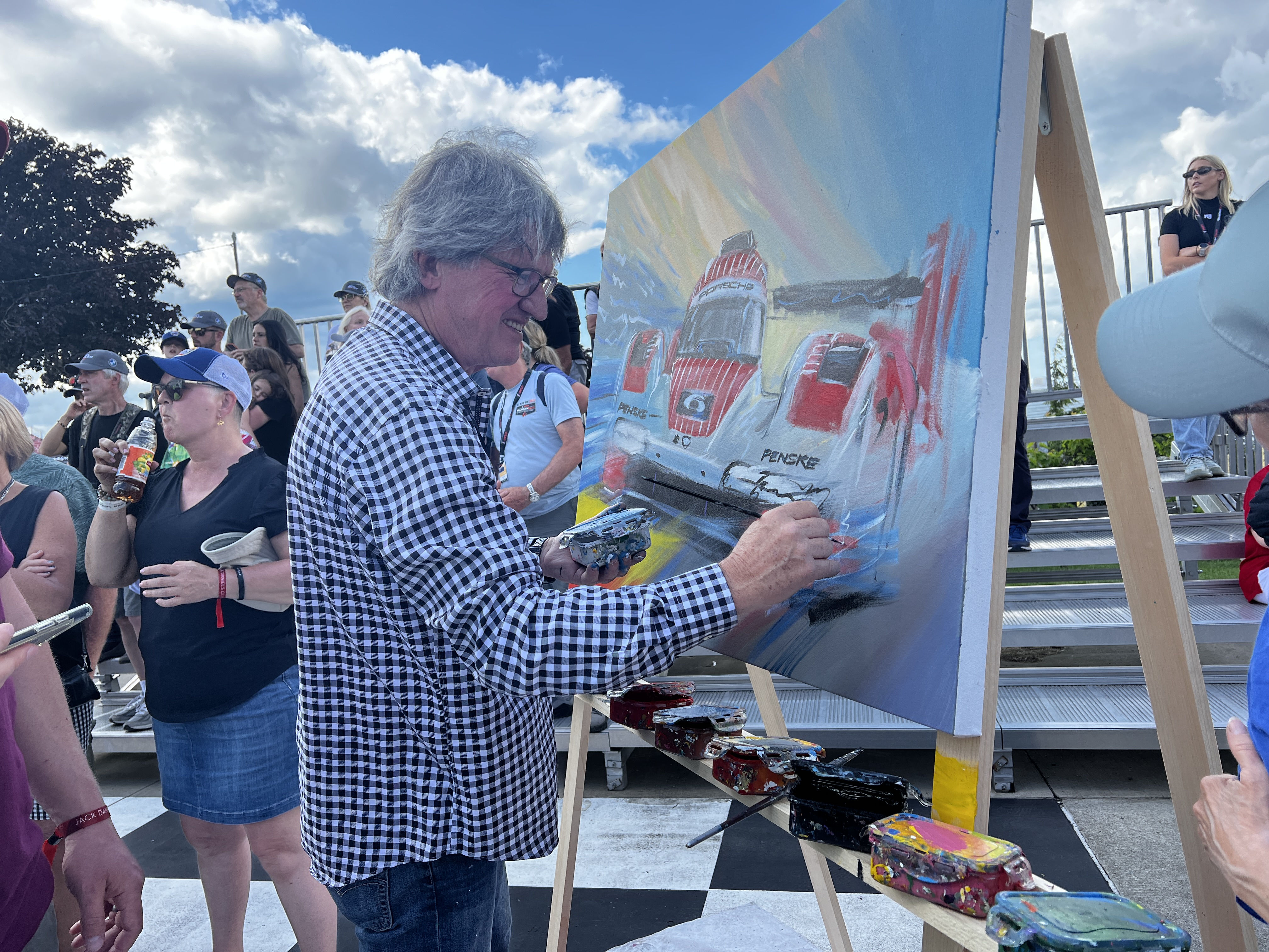 Our friend Blll Patterson started painting the (hopefully) winning car about 6 minutes before the last yellow flag guaranteeing, temporarily, the Porsche's win which was later changed.