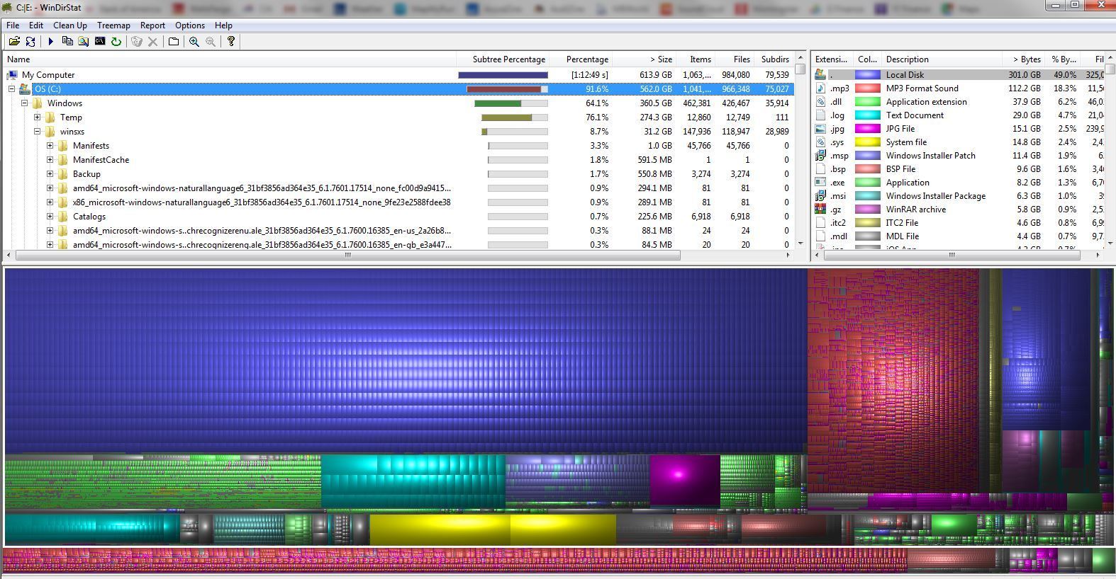 Also I've switched to using WizTree or TreeSizeFree instead of WinDirStat. Same thing but they take only a few seconds to give you results instead of a minute like WinDirStat does.