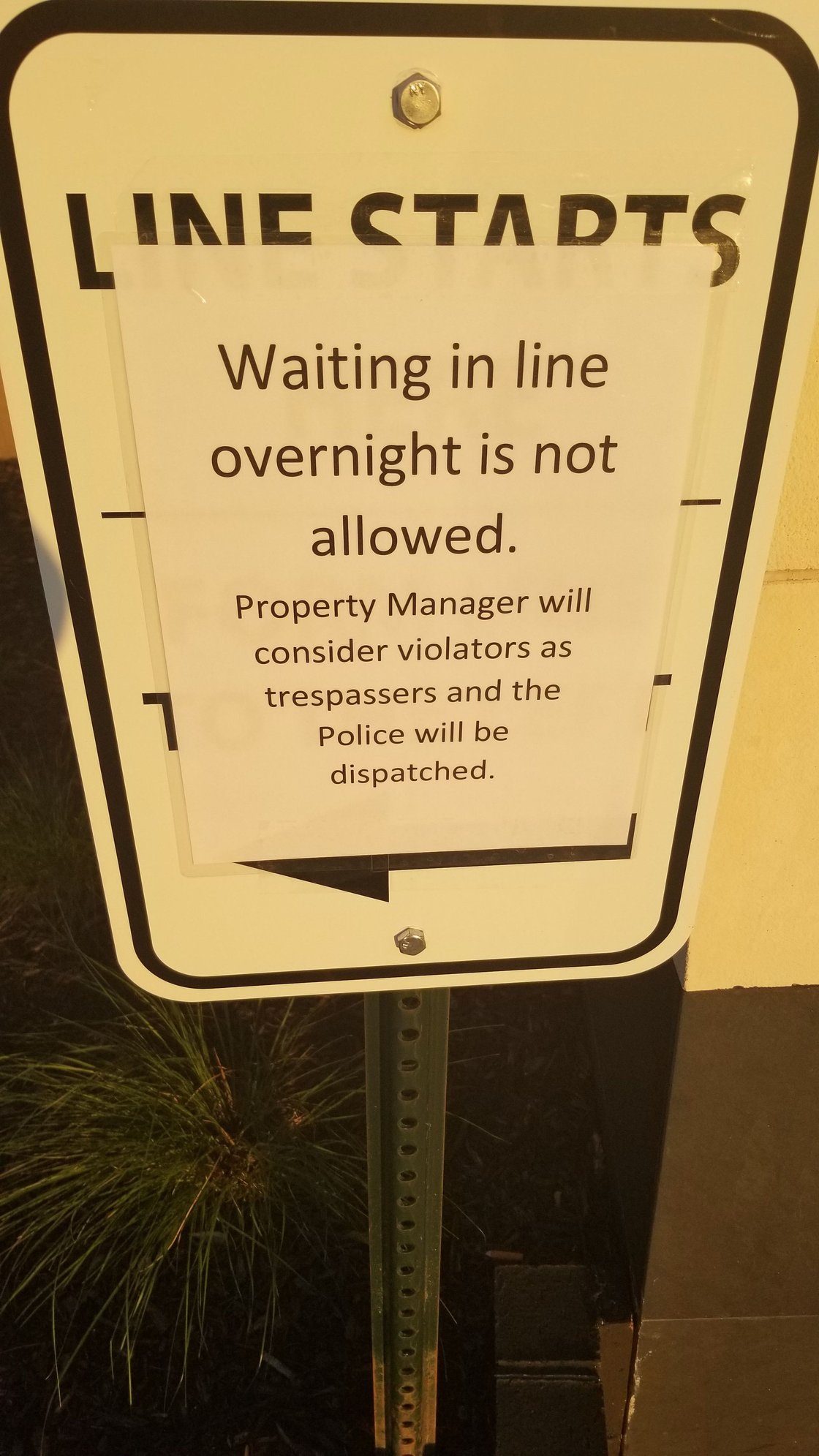 Some dude pulled up and tried to offer the 1st guy in line $1000 to get his spot/cut entire line...basically got told to F off.....dude comes back and drives by in his car and starts shooting paintballs at the ppl waiting in line...no one seriously hurt (thank god) but cops called and couple of ppl in line who were carrying almost thought they were getting shot for real for a second before they held off once they realized it was just paintballs (still can do big damage, and a round metal barrel sticking out of a car window at midnight.....).