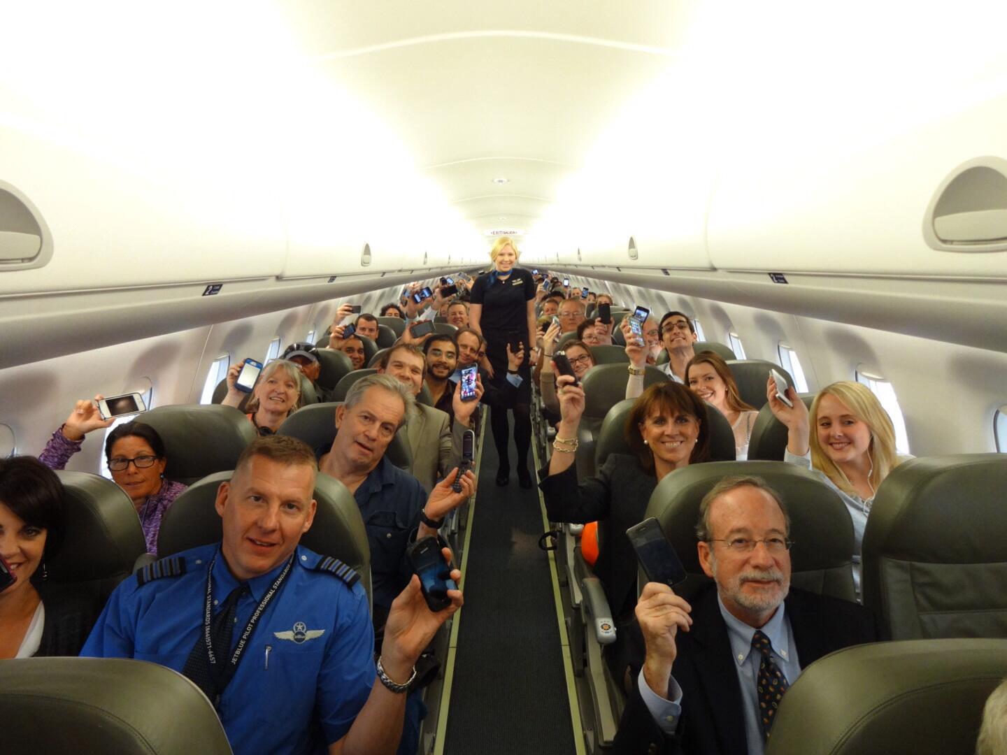 Passengers on one of the first flights to allow gadget use before takeoff and landing.