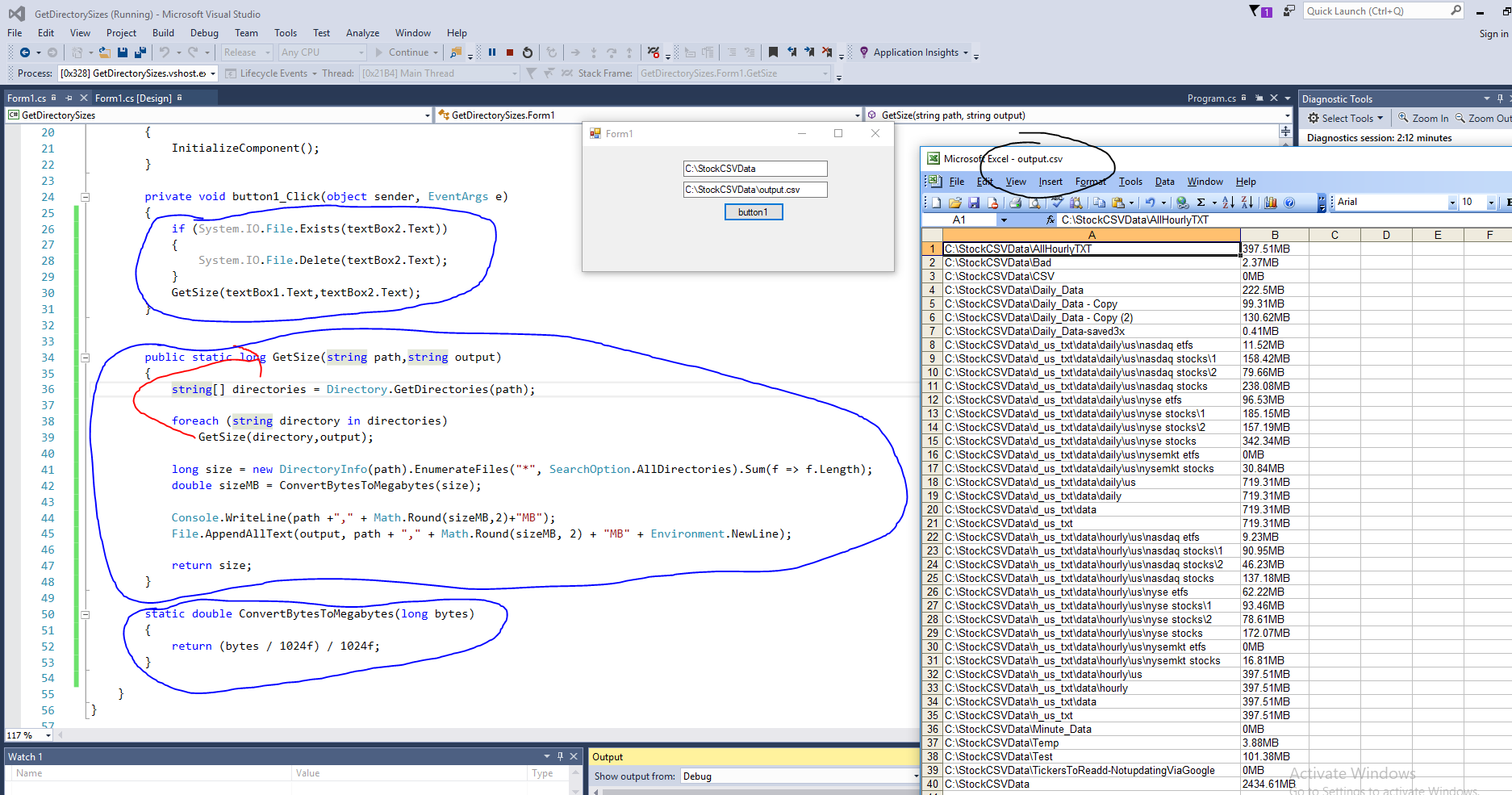 Output to csv on the right.