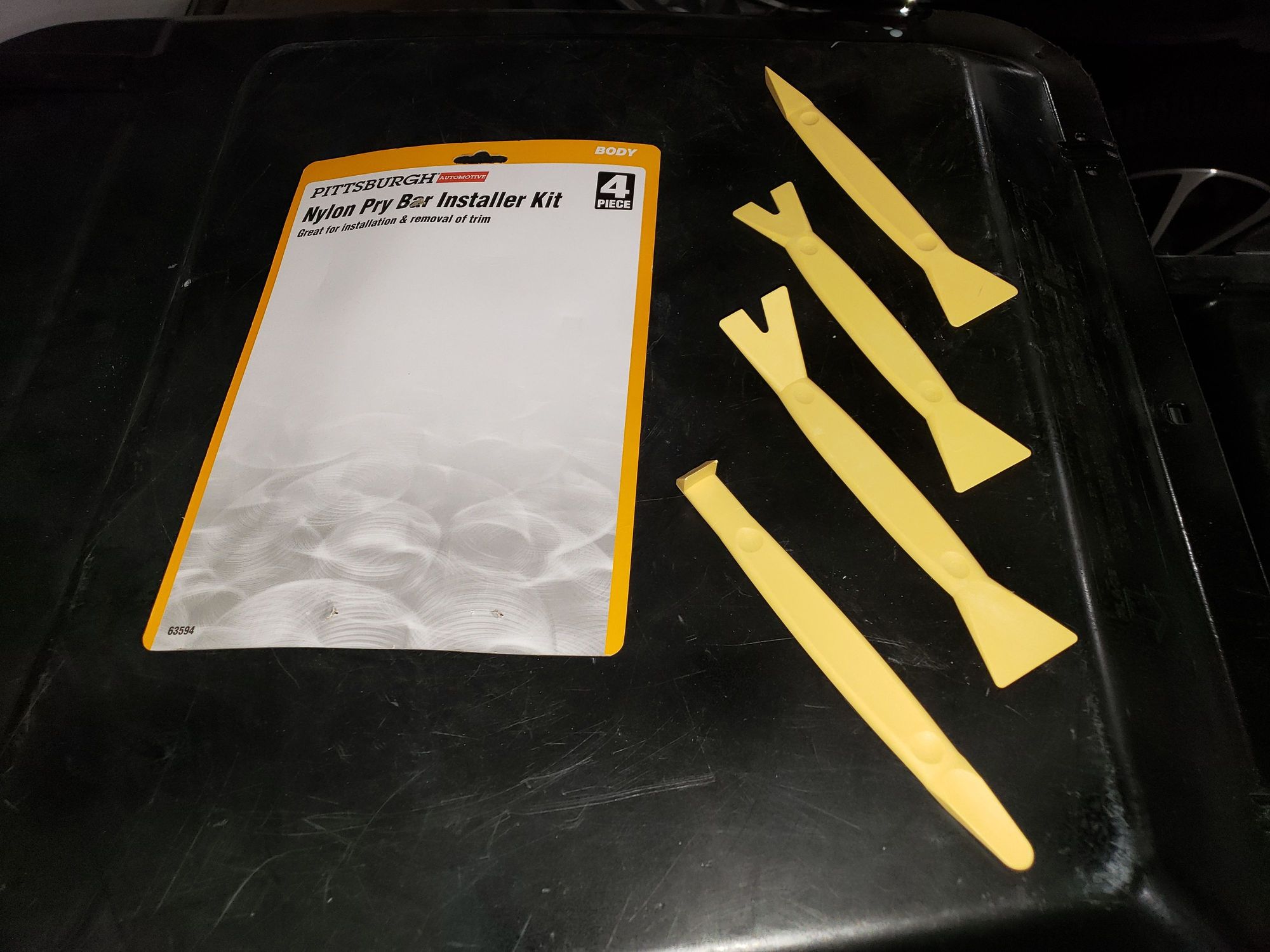 Make sure to purchase this $4.99 Harbor Freight Nylon Pry Bar Kit. Works great.