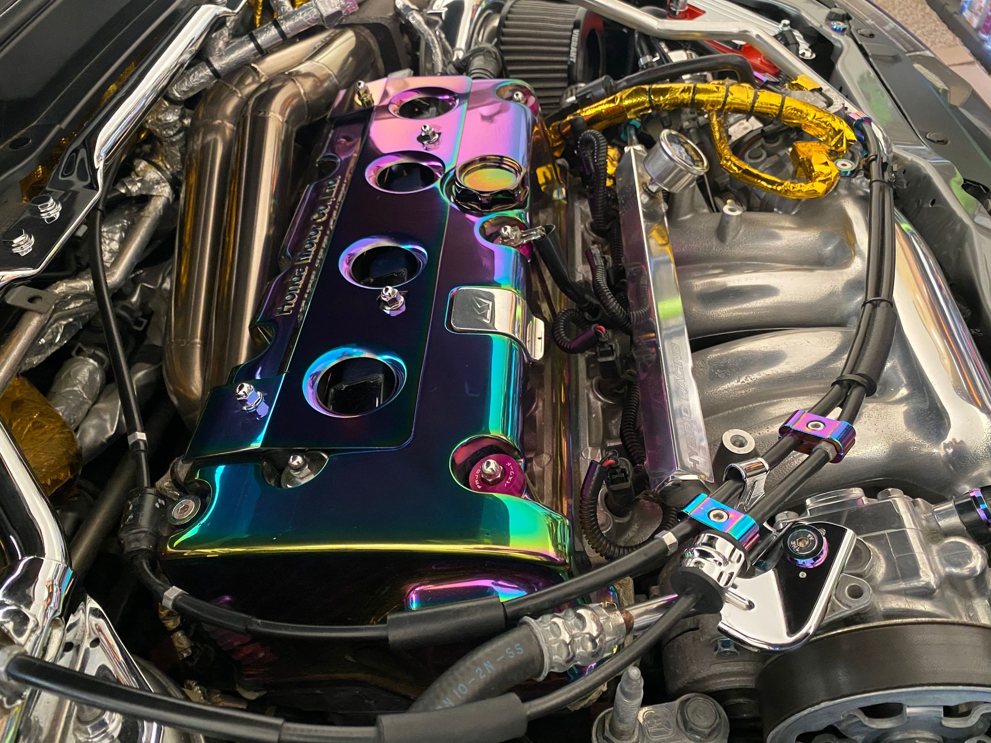 Neo chrome valve cover, oil cap, and coil pack cover. (Not eBay)