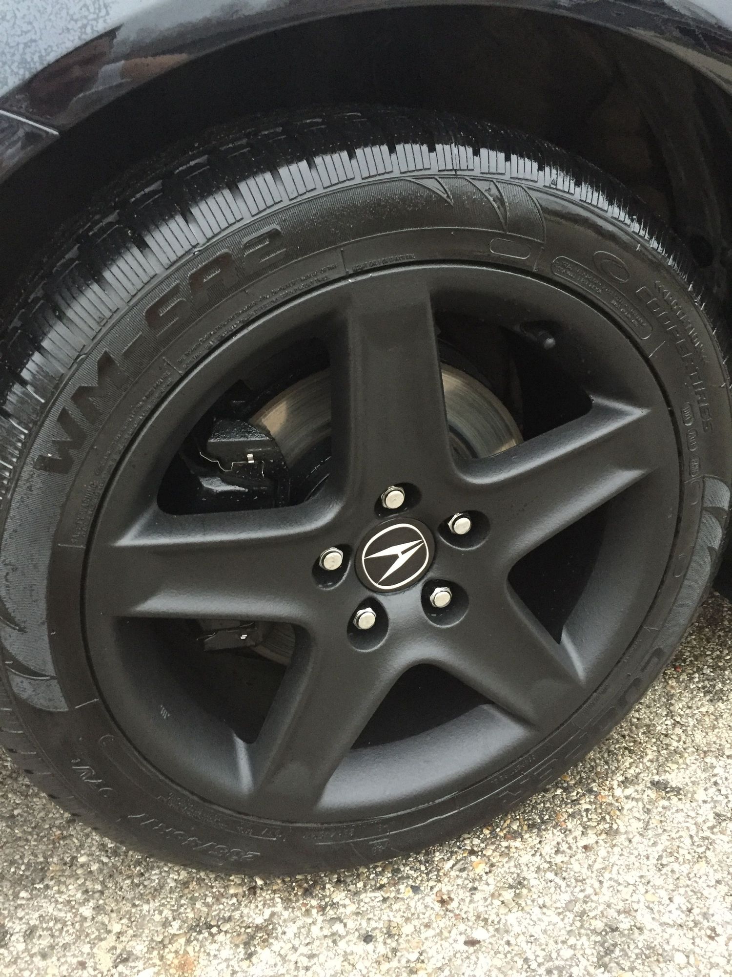 Plasti Dipped OEM Rims with Black Acura Wheel Center Cap DecalsMore About This Picture