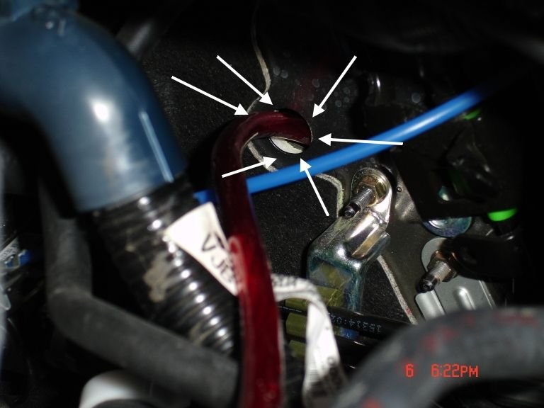 To get the power wire from the battery to the trunk you'll need to go through the firewall. There is a grommet in the center of the firewall which you can route the power wire through.